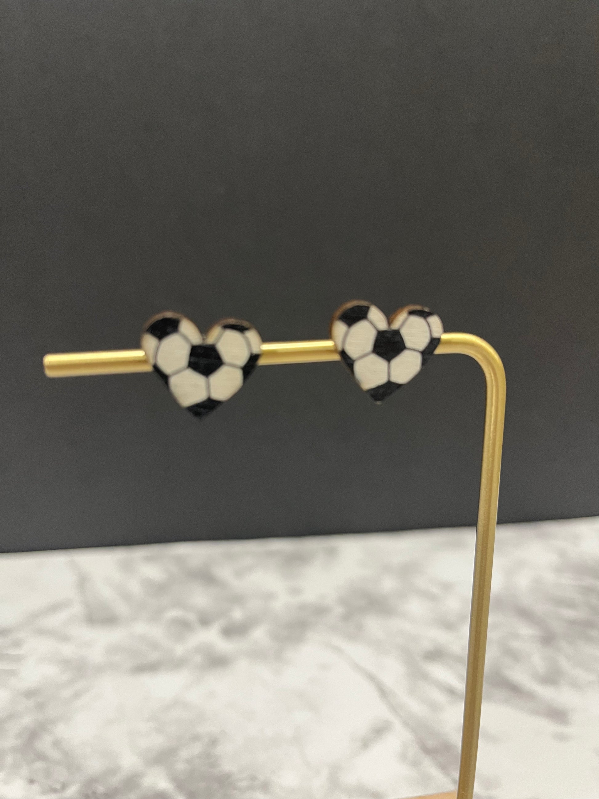 Heart-shaped soccer stud earrings.